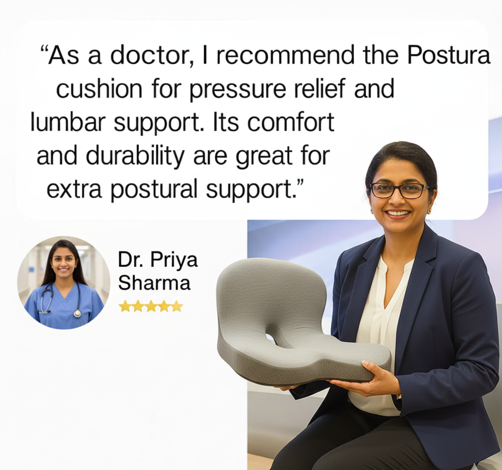 Doctor-approved design. Orthopedic-grade support. Postura™ turns professional-level pain relief into everyday sitting comfort.